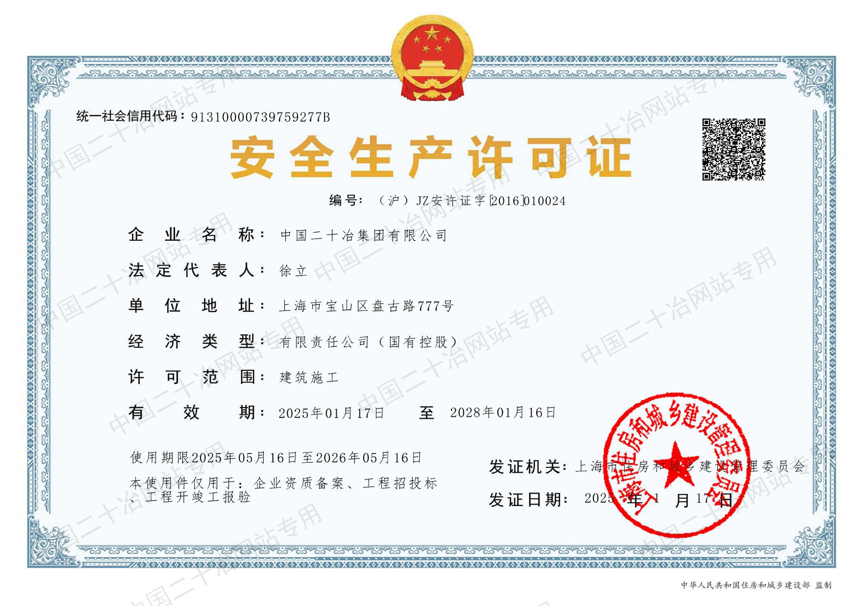 工程施工资质(上海市)