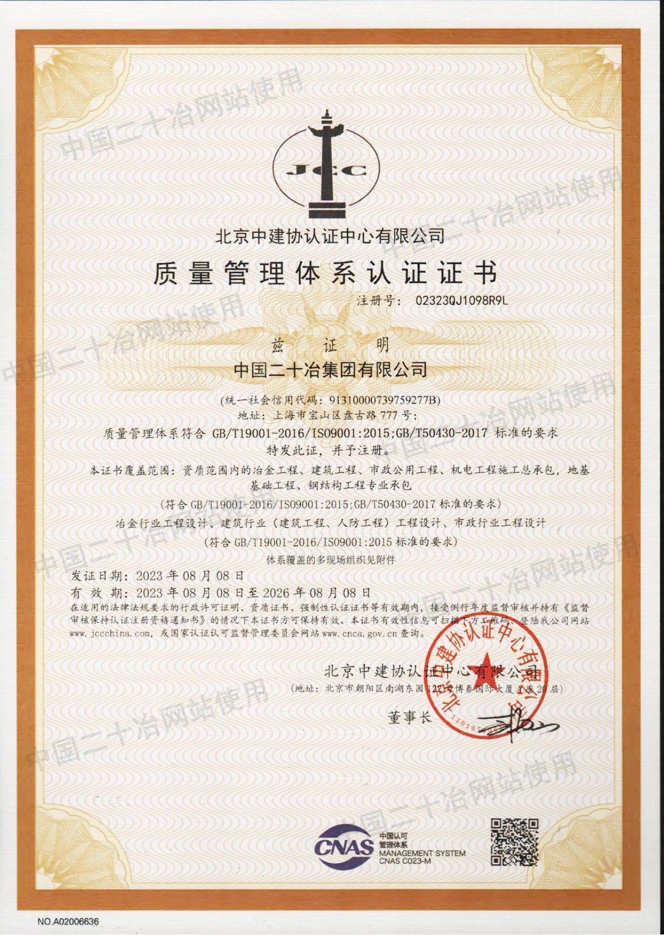 质量管理体系认证证书